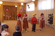В ДОУ проведён фольклорный праздник "Широкая масленица". В программе: исполнение старшими дошкольниками русских народных песен, хороводы, пляски, весёлые аттракционы. В финале праздничных гуляний - угощение детей блинами