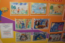 В ДОУ оформлена выставка детских рисунков старших дошкольников на тему: "Любимые герои мультфильмов по произведениям Г.Тукая".