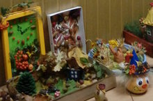 На выставку были представлены интересные поделки из шишек и желудей, из листьев, коры, ветвей и корней деревьев, из засушенных цветов, травы, из овощей и фруктов. Воспитанники и родители воспитанников в своих совместных работах проявили творчество и фантазию. Смастерили замечательные поделки: забавные игрушки, очаровательные персонажи из любимых сказок, целые композиции, которые можно назвать произведениями искусства. Яркие рисунки, коллажи украшают фойе детского сада.