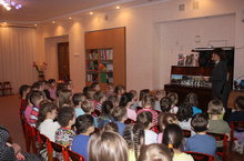 Сегодня в нашем детском саду состоялась музыкальная гостиная "Песни военных лет", посвященная 70-летию Победы в ВОВ. Ребятам рассказали о годах Великой Отечественной войны, поэзии и музыке военных лет, о том, как творчество помогало укреплять боевой дух солдат, воевавших на фронте. Дети внимательно слушали песни, опаленные войной, очень выразительно исполняли «Катюшу». Музыкальный руководитель Каримуллина Фарида Минуловна рассказала, к какому периоду войны относится та или иная песня. После прослушивания был проведен конкурс «Угадай-ка», в ходе которого дошкольники отгадывали военные мелодии.