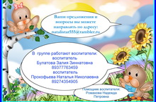 Со 2 августа в МДОУ начинается комплектование группы. В этом учебном году во 2 младшую группу "Воробушки" вас ждут воспитатели Прокофьева Наталья Николаевна, Булатова Залия Зиннатовна и замечательный помощник воспитателя Романова Надежда Петровна.