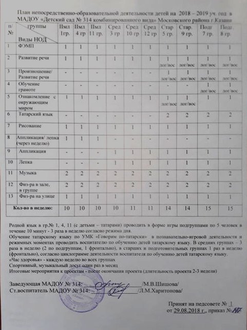 план непосредственно-образовательной деятельности на 2018-2019 учебный год