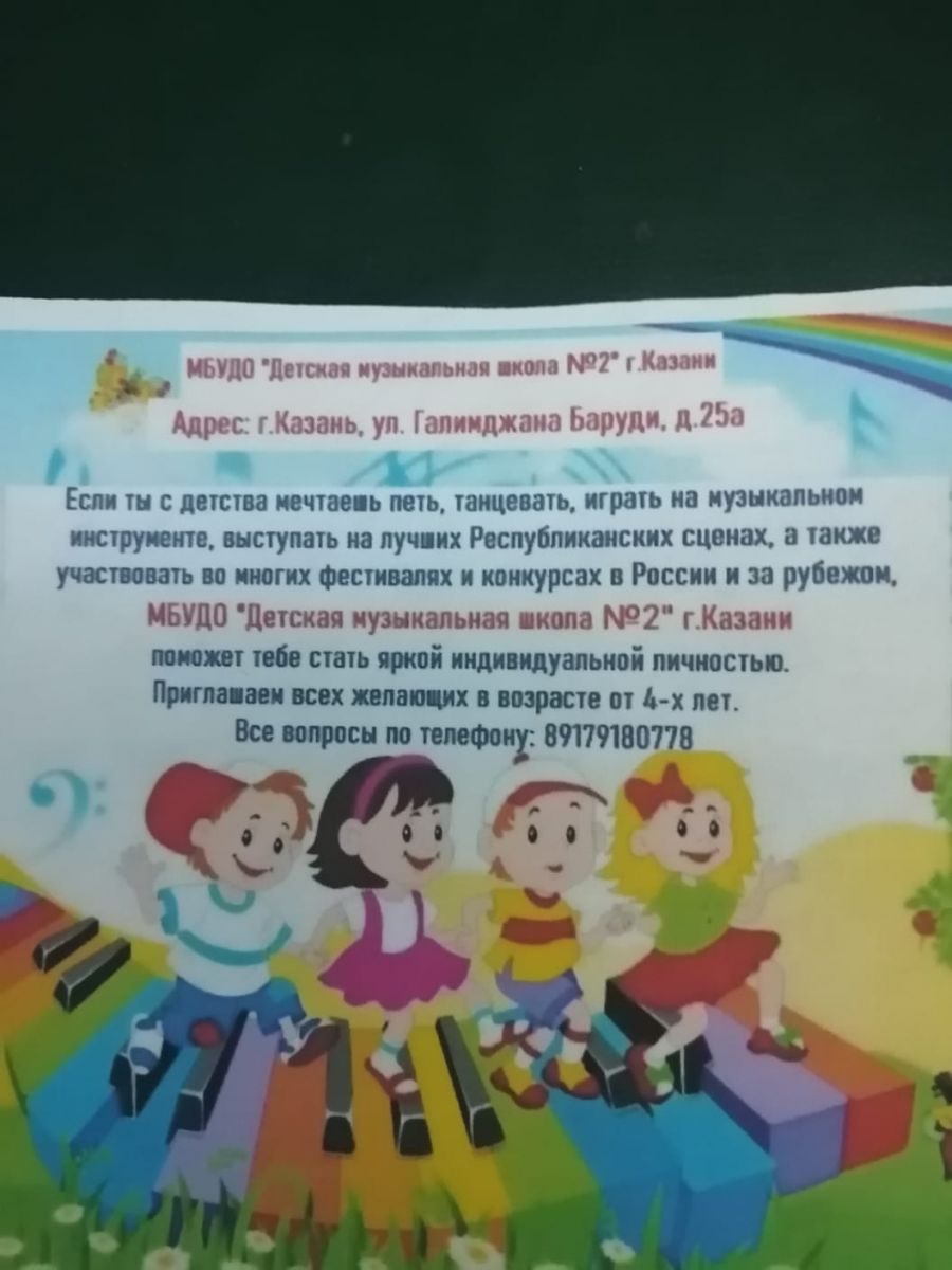 Опубликовано: 29.03.2023Дети из музыкальной школы № 2 выступили перед нашими ребятами. Нашим дошкоьникам очень понравилось выступление. И если они захотят освоить музыкальные инструменты, здесь есть объявление для родителей , как поступить в музыкальную школу.