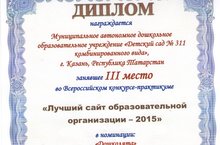 Диплом за 3 место во Всероссийском конкурсе "Лучший сайт образовательной организации - 2015" 11.01.2016