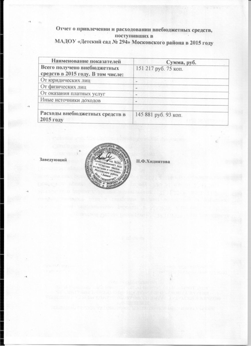 Отчет о привлечении и расходовании внебюджетных средств за 2015 год