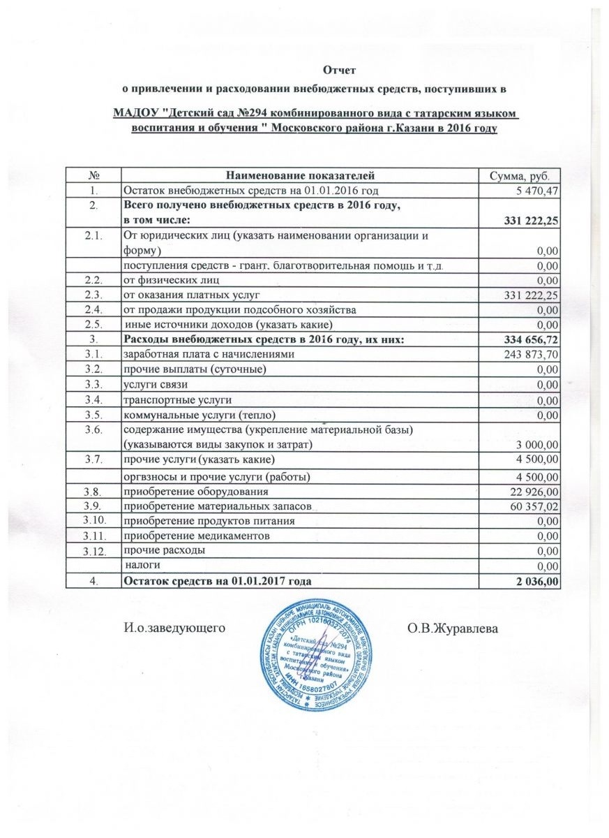 Отчет о привлечении и расходовании внебюджетных средств за 2016 год