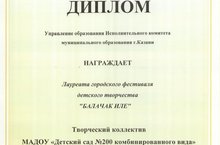 Наш детский сад стал победителем городского фестиваля детского творчества "Балачак иле".