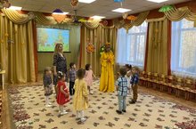 Сегодня в подготовительной к школе группе №4 прошел Осенний праздник. Веселая осенняя ярмарка разыгралась в музыкальном зале. Ребята погрузились в атмосферу русского народного гуляния с его обычаями и традициями. И конечно же, на ярмарке присутствовала сама хозяйка Осень, которая вместе с детьми участвовала в представлении. Ребята пели песни, читали стихи, играли в народные игры, водили хороводы. Порадовали ребята- лошкари своим выступлением, цыганни с веселым мишкой, девочки чудесным хороводом с платками. Русская народная музыка, яркие народные костюмы показали весь колорит народного осеннего гуляния и широту души русского народа.