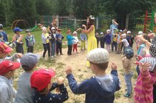 Сегодня у нас прошёл праздник «Ах лето, лето…». В гости к ребятам пришла сама виновница праздника Красавица Лето. Дети пели песни о лете и танцевали, играли в игры: «Солнышко», «Шляпа», «Не наступи на цветочек», «Бабочка летает», «Тарики-комарики», «Огород». Было весело и интересно!