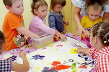 В детском саду прошел праздник "Разноцветные ладошки". Сегодня мы рисовали лето с помощью пальчиков и ладошек. Под веселую, задорную музыку дети творили! Как ребятам было интересно собственной ладошкой или пальчиком, ставить на бумаге кляксы и получать забавный рисунок. Праздник удался на славу!