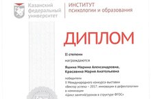 Поздравляем наших логопедов Яшина М.А. и Красавина М.А., которые приняли участие во II-ом Международном конкурсе-выставки "Вектор успеха - 2017" в номинации "Цикл занятий в структуре ФГОС" и были награждены дипломом II степени. Желаем дальнейших успехов и новых побед!