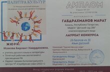 Поздравляем Габдрахманова Марата с Победой в IV Международном конкурсе на родных языках для детей и молодежи «Палитра культур» в номинации «Художественное слово», а так же педагогов подготовивших победителя воспитателя Фархутдинову А.Д. и учителей- логопедов Валиуллину Ф.А. и Файзуллину М.В.