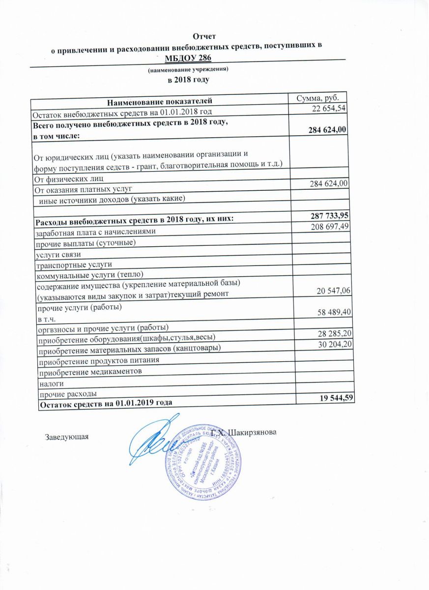 Отчет о привлечении и расходовании внебюджетных средств за 2018г.