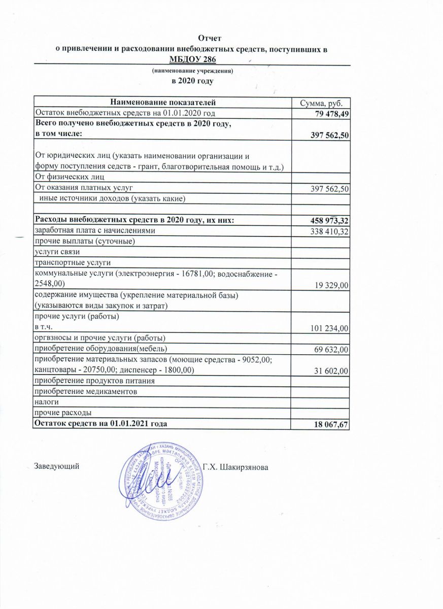 Отчет о привлечении и расходовании внебюджетных средств за 2020г.