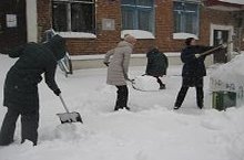 В связи с обильными снегопадами и метелями 05.02.2018 г. сотрудники МАДОУ приняли активное участие в городской операции "Буран" по уборке от снега территории детского сада.