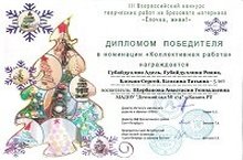 Воспитанники нашего детского сада, стали победителями IIIВсероссийского конкурса творческих работ из бросового материала "Елочка, живи!"- 2016 в номинации "Коллективная работа".