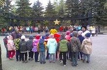 Накануне великого праздника – Дня Победы – по традиции в нашем детском саду прошли мероприятия, посвященные 9 мая. Этот великий подвиг советского народа мы будем помнить всегда. И именно от нас, взрослых и родителей, зависит отношения ко Дню Победы и Великой Отечественной войне подрастающего поколения. Наши дети должны знать историю своей страны, уважать бессмертный подвиг ветеранов. Поэтому ежегодно педагоги вместе с детьми в канун Великого праздника возлагают цветы к монументу павших в годы ВОВ в парке им.Урицкого.