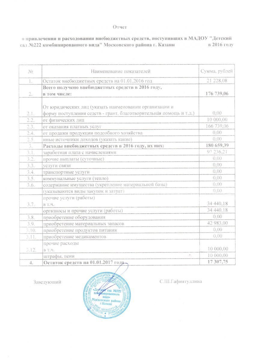 Отчет о привлечении и расходовании внебюджетных средств за 2016 год