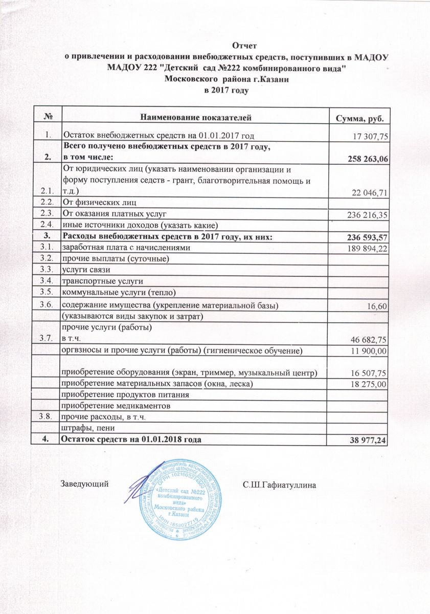 Отчет о привлечении и расходовании внебюджетный средств за 2017 год
