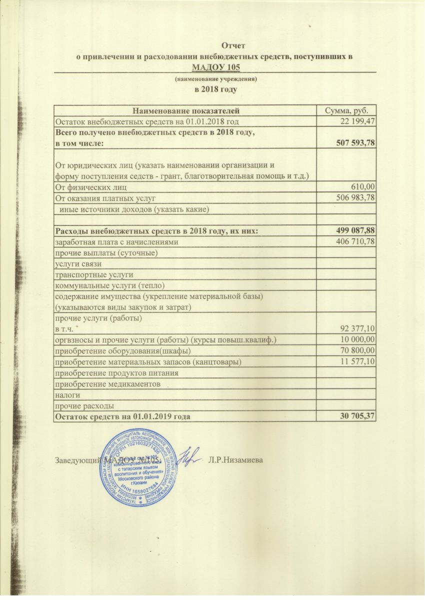 Отчет о привлечении и расходовании внебюджетных средств. 2018.