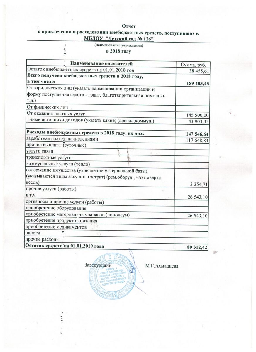 Отчет о привлечении и расходовании внебюджетных средств поступивших в 2018 году