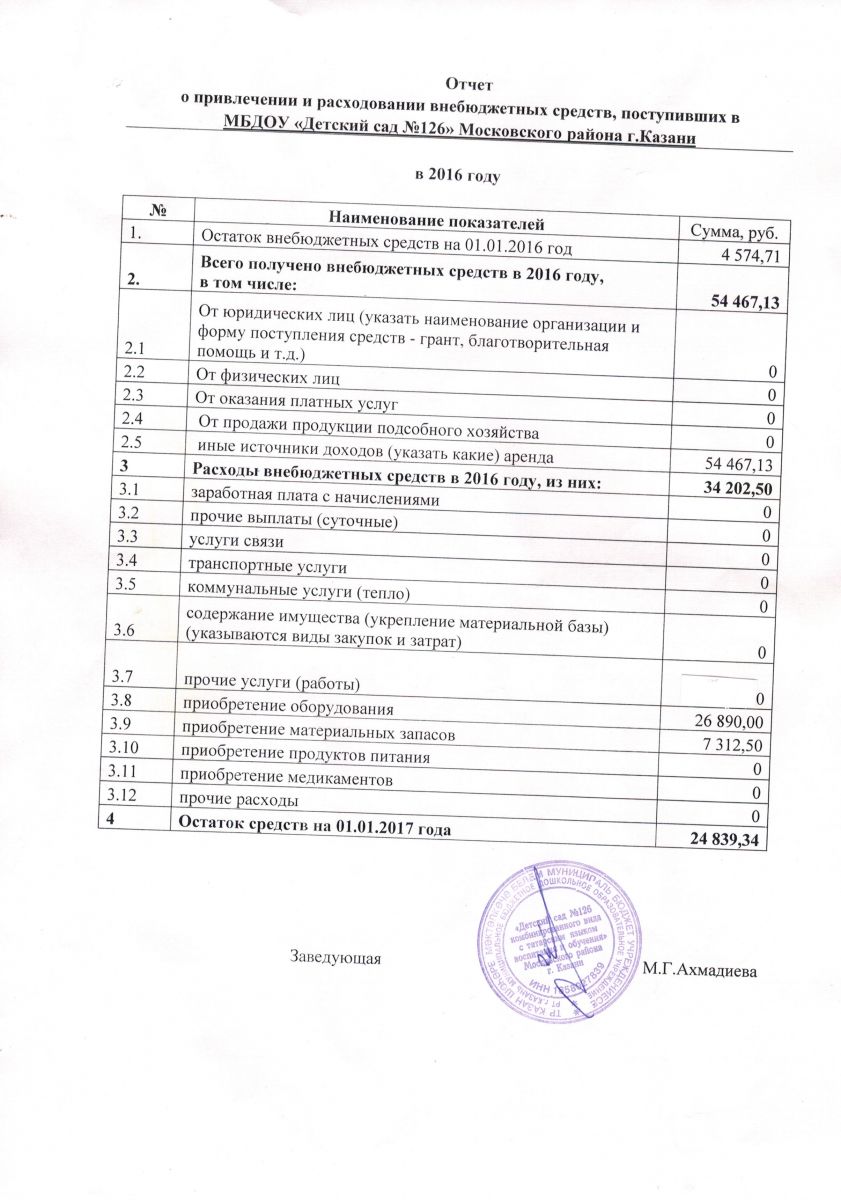 Отчет о привлечении и расходовании внебюджетных средств поступивших в 2016 году