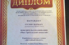 Поздравляем нашу воспитанницу, Гусеву Варвару, с победой в номинации "Мисс зрительских симпатий" в районном конкурсе чтецов "Звездный билет". Педагог Гущина Елена Николаевна.