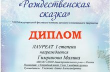 Поздравляем нашу воспитанницу Гимранову Малику, посещающую разновозрастную группу, с получением Диплома лауреата I степени в номинации "Эстрадный вокал. Соло. 1 младшая группа" в VIII Международном фестиваль-конкурсе детского и юношеского творчества "Рождественская сказка". Молодец! Так держать!