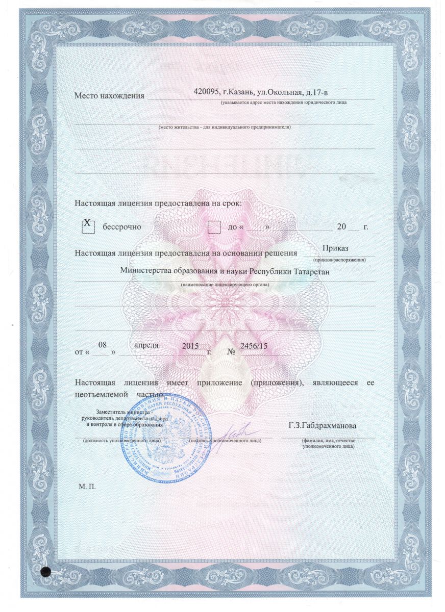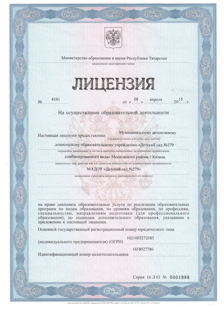 Лицензия на осуществление образовательной деятельности МАДОУ №279
