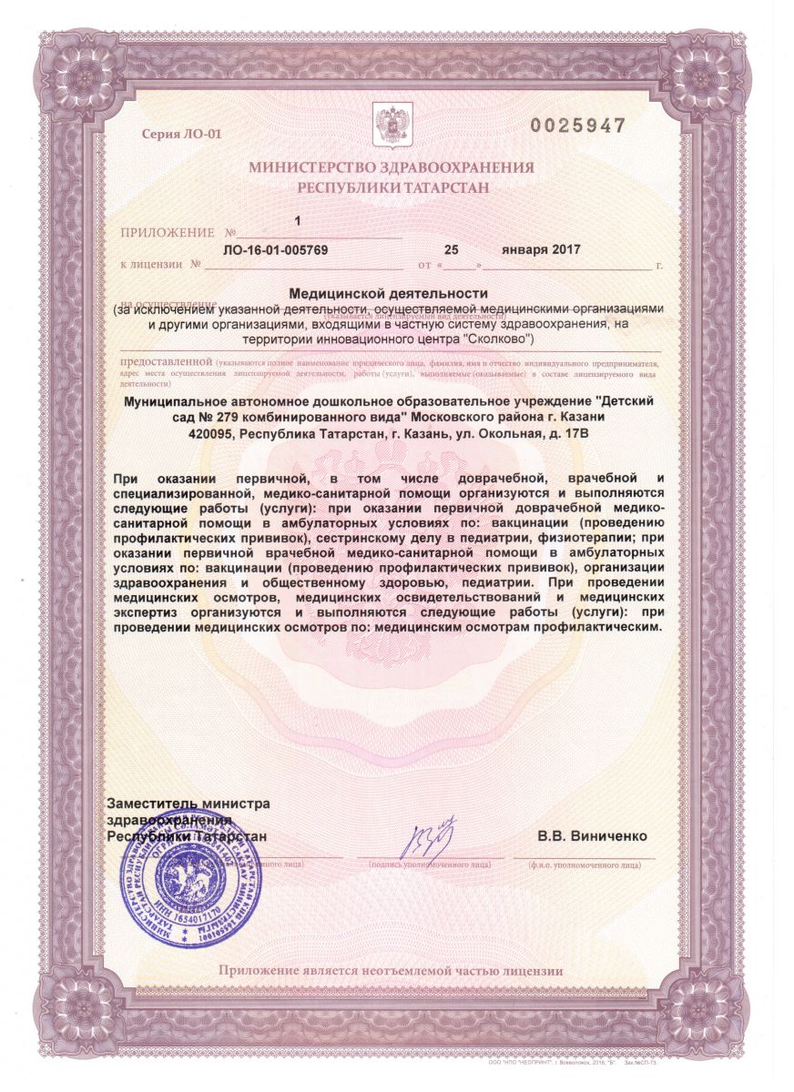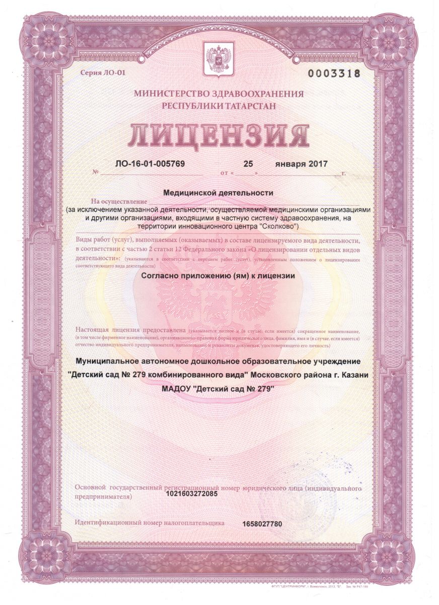 Лицензия на осуществление медицинской деятельности в МАДОУ 279