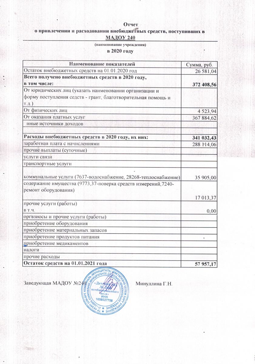 Отчет о привлечении и расходовании внебюджетных средств за 2020г