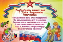 День защитника Отечества воспитывает в детях чувство патриотизма, уважение к воинам, сопричастности к лучшим традициям своей Родины. Это праздник настоящих мужчин — смелых, отважных, ловких, надёжных, а также праздник мальчиков, которые вырастут и станут защитниками Отечества. В детском саду прошли тематические вечера посвященные Дню Защитника Отечества.Наша задача воспитать в ребятах чувство патриотизма и любви к своей Родине, своим традициям.Праздник состоялся, и мир вокруг нас стал чуточку ярче, светлее и добрее! Детский сад поздравляет всех мужчин с Днем защитника Отечества! И пусть небо над Россией и всем миром всегда будет только ясным!