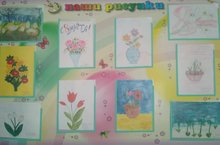 Дети подготовительных к школе групп организовали выставку рисунков "Первоцветы для мамы".