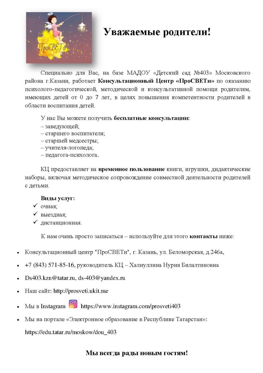 Обращаем Ваше внимание, что специалисты консультационных центров готовы принять участие в проводимых в районе мероприятиях с родителями (родительские собрания, консультации, лекции и т.д.).