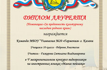 Поздравляем Редрееву Анастасию, ученицу 10 А класса и её руководителя Гижирову Светлану Владимировну с победой в V межрегиональном конкурсе видеороликов на иностранных языках "Магия пейзажа". Молодцы, желаем дальнейших побед!!!