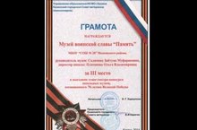 Поздравляем директора нашей школы О.В.Платонову и руководителя школьного Музея воинской славы «Память» З.М. Салимову с очередной победой (3 место) в городском выездном смотре-конкурсе школьных музеев, посвящённом 70-летия Великой Победы.