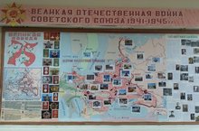 В память о тяжёлых боях, которые вела Красная Армия с фашистскими захватчиками на территории Советского Союза в годы Великой Отечественной войны 1941-1945 годов и в период освобождения стран Европы, в холле школы оформлена карта, наглядно повествующая о славном пути советских войск к Победе над гитлеровской Германией. Выражаем глубокую признательность и слова благодарности художнику Гайфутдинову Фирдусу Хайрутдиновичу, жителю микрорайона школы, и Салимовой Зайтуне Муфараковне, руководителю школьного музея воинской славы "Память" за творческое отношение к созданию проекта.