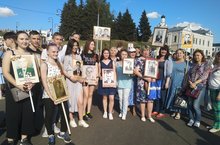 В майский светлый день заветныйЧерез семь десятков летМарширует полк Бессмертный –Память доблестных побед.Строем правнуки и внукиПобедителей войны –Словно знамя, держат рукиФото воинов страны...9 мая учителя, ученики и их родители прошли дружными рядами вместе со многими тысячами казанцев по улицам нашего города в торжественном шествии "Бессмертный полк"