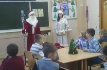 Новогоднее поздравление учащихся и вручение сладких подарков во время классных меропоиятий.
