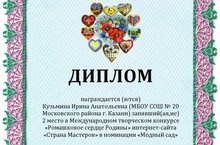 Поздравляем! Команду педагогов и обучающихся нашей школы, занявших призовые места в Международном творческом конкурсе "Ромашковое сердце Родины". Кузьмина И.А. - 2 место; Казакова И.Г. - 1 место; Григорьева Виктория - 3 место; Майорова А., Имамеева В., Шувалова Д., Гришина А., Керимова Э. - 2 место.