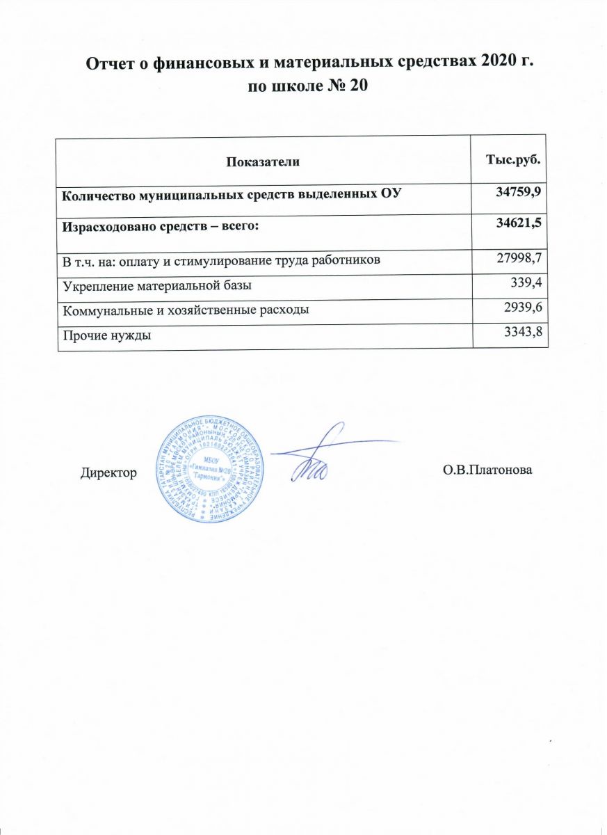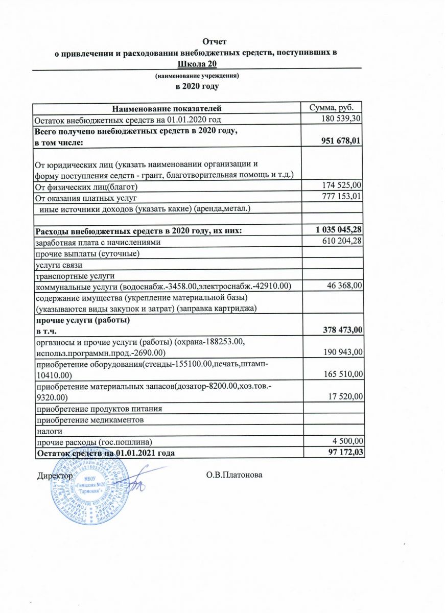 Отчет о привлечении и расходовании внебюджетных средств 2020г