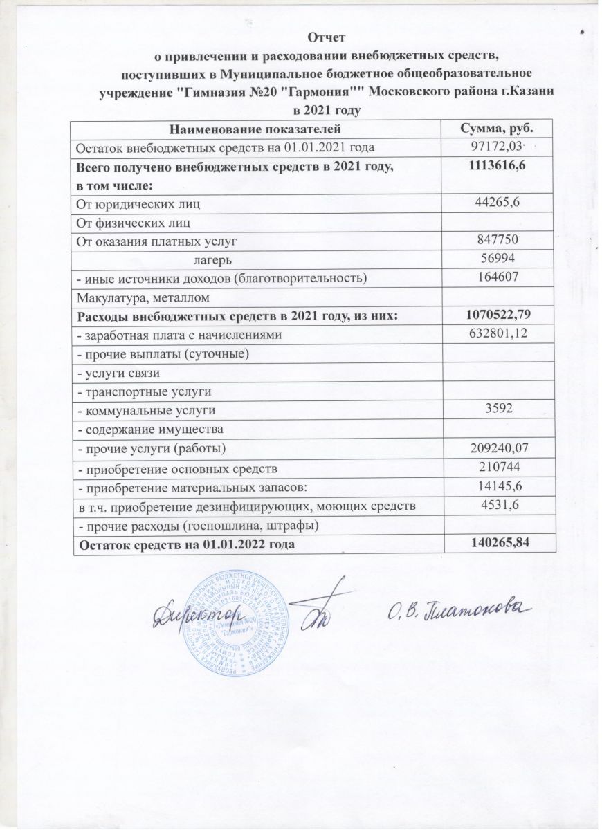 Отчет о привлечении и расходовании внебюджетных средств в 2021г