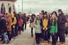Флешмоб «Казань за «Новую волну». 05.12.2014 Учащиеся 10а класса приняли участие во флешмобе «Казань за «Новую волну». Участники флешмоба выстроились в гигантскую надпись «Казань за Новую волну». После этого три украшенных микроавтобуса, в которых находятся порядка ста тысяч подписей под обращениями к президенту РФ Владимиру Путину с просьбой о переносе фестиваля в Казань, отправились в Москву.