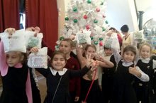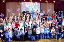 В актовом зале для учащихся 1-4-х классов прошел Новогодний праздник с Дедом Морозом, Снегурочкой и вождем африканского племени.