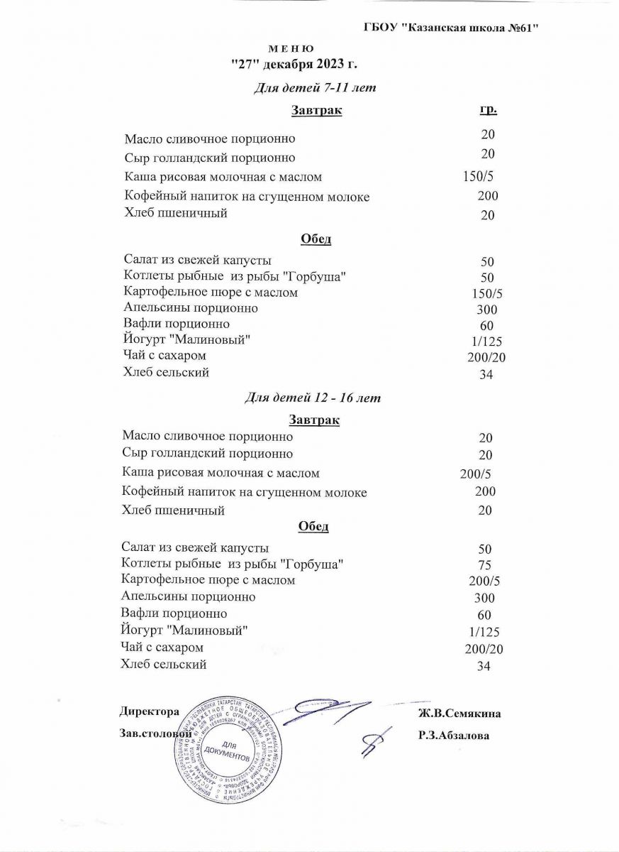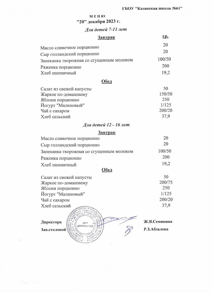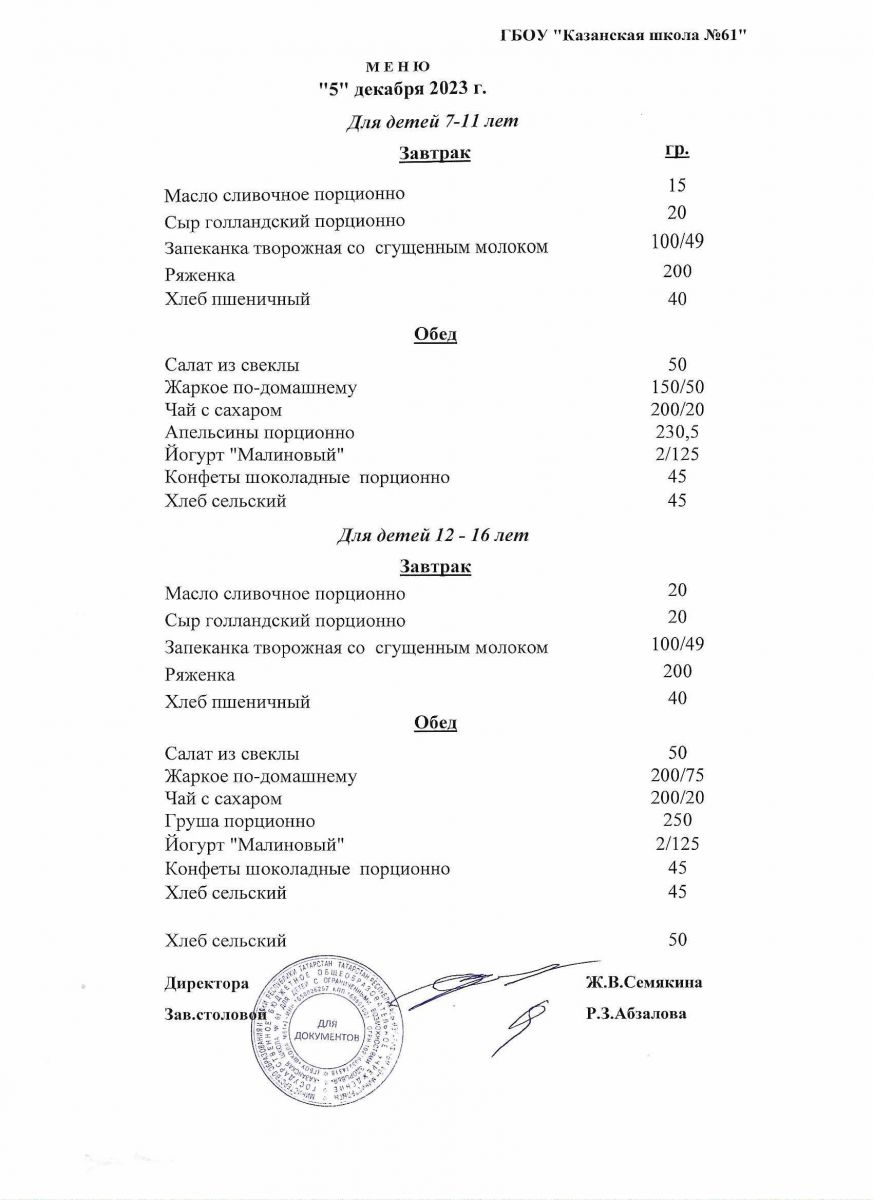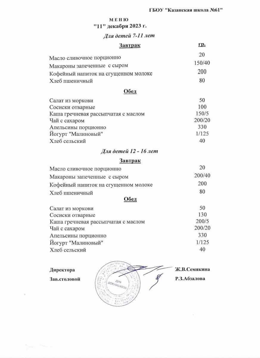 Меню на период с 8 по 13декабря 2022 г.