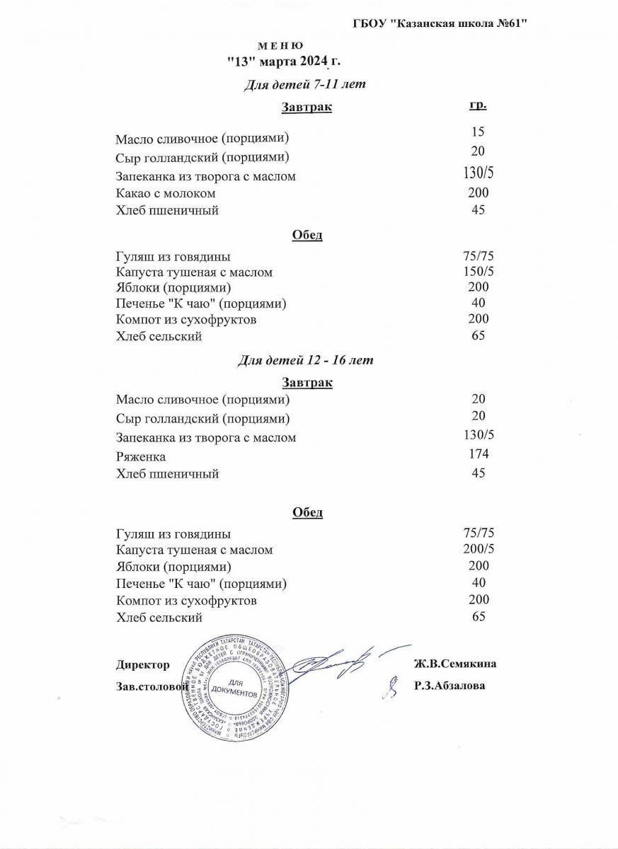 Меню на период с 13 по 20 марта 2023 г
