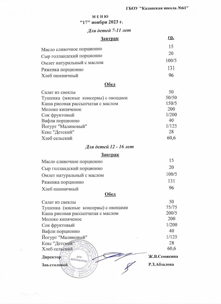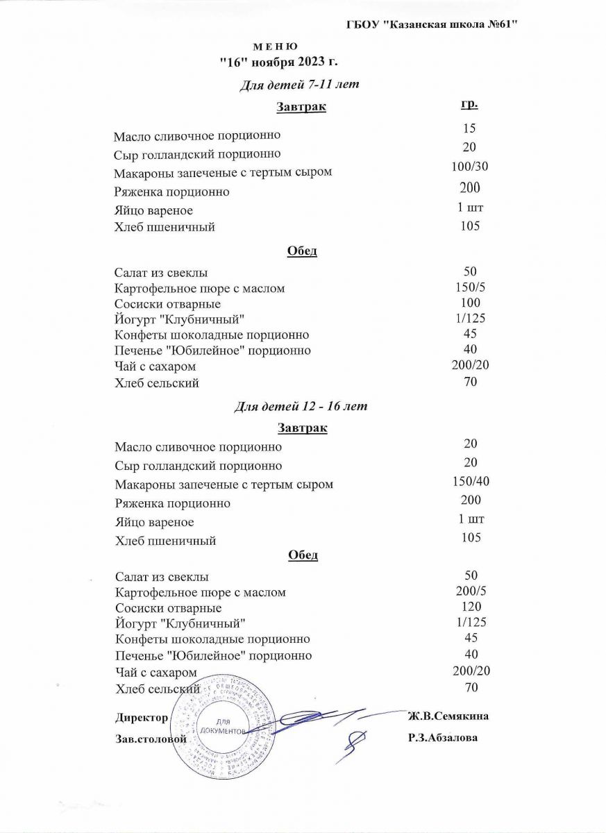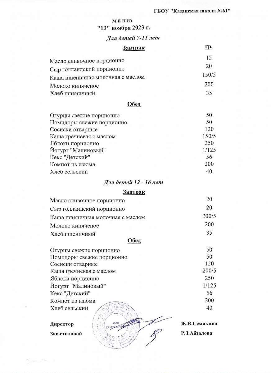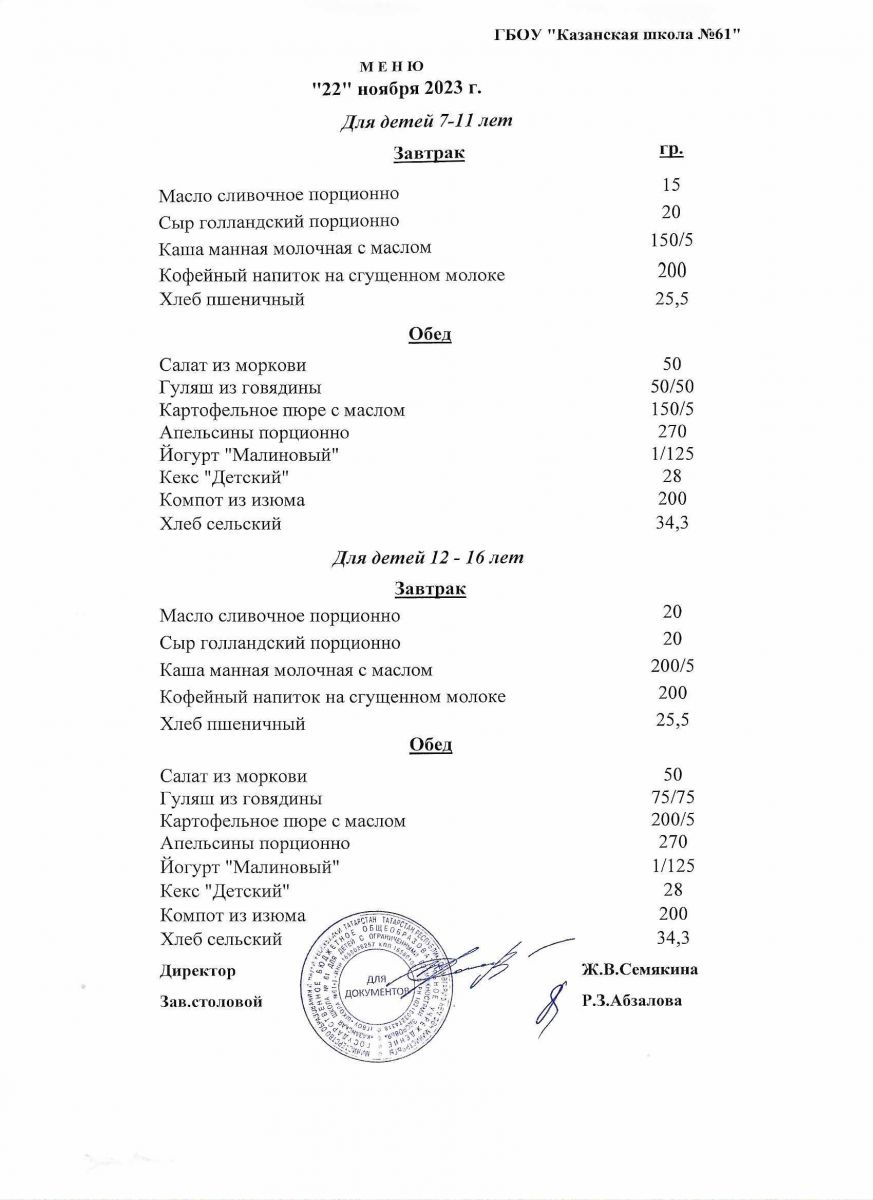 Меню на период с 11 по 17 ноября 2022 г.