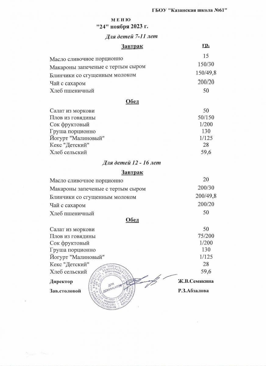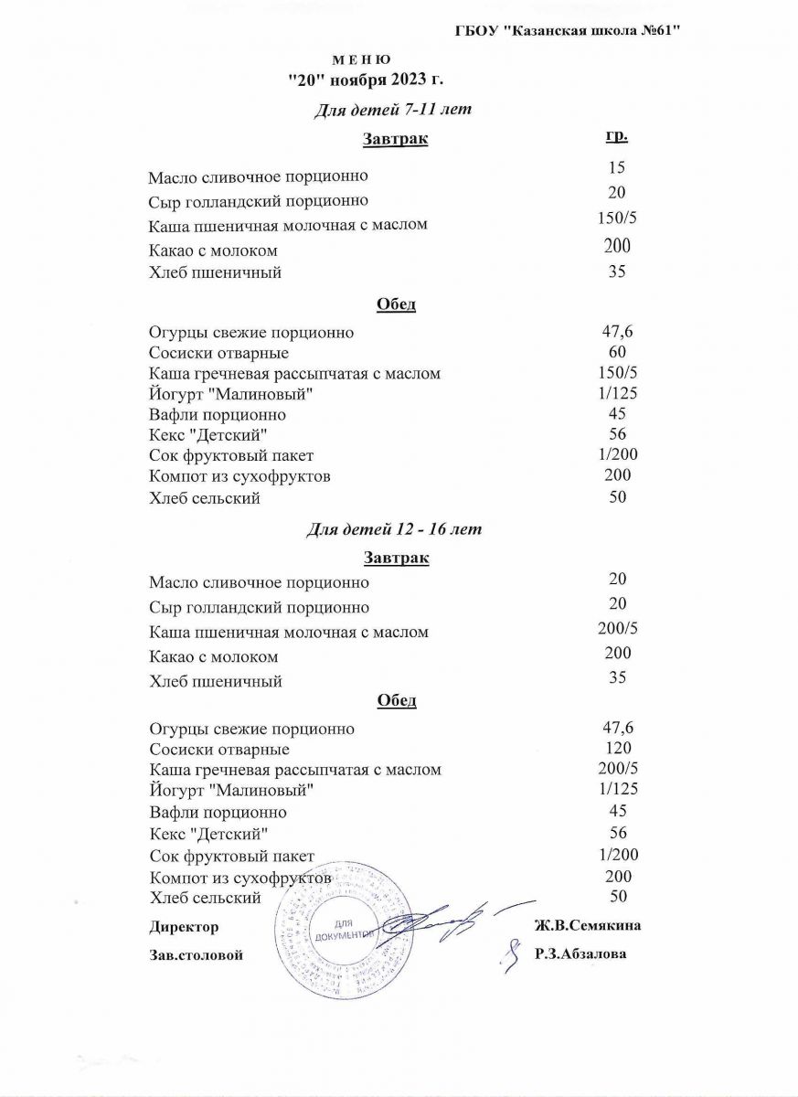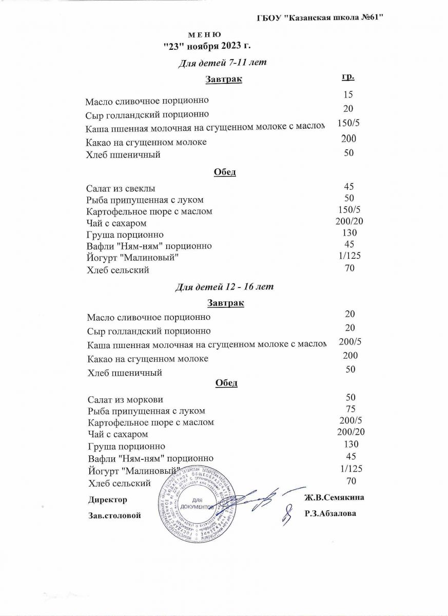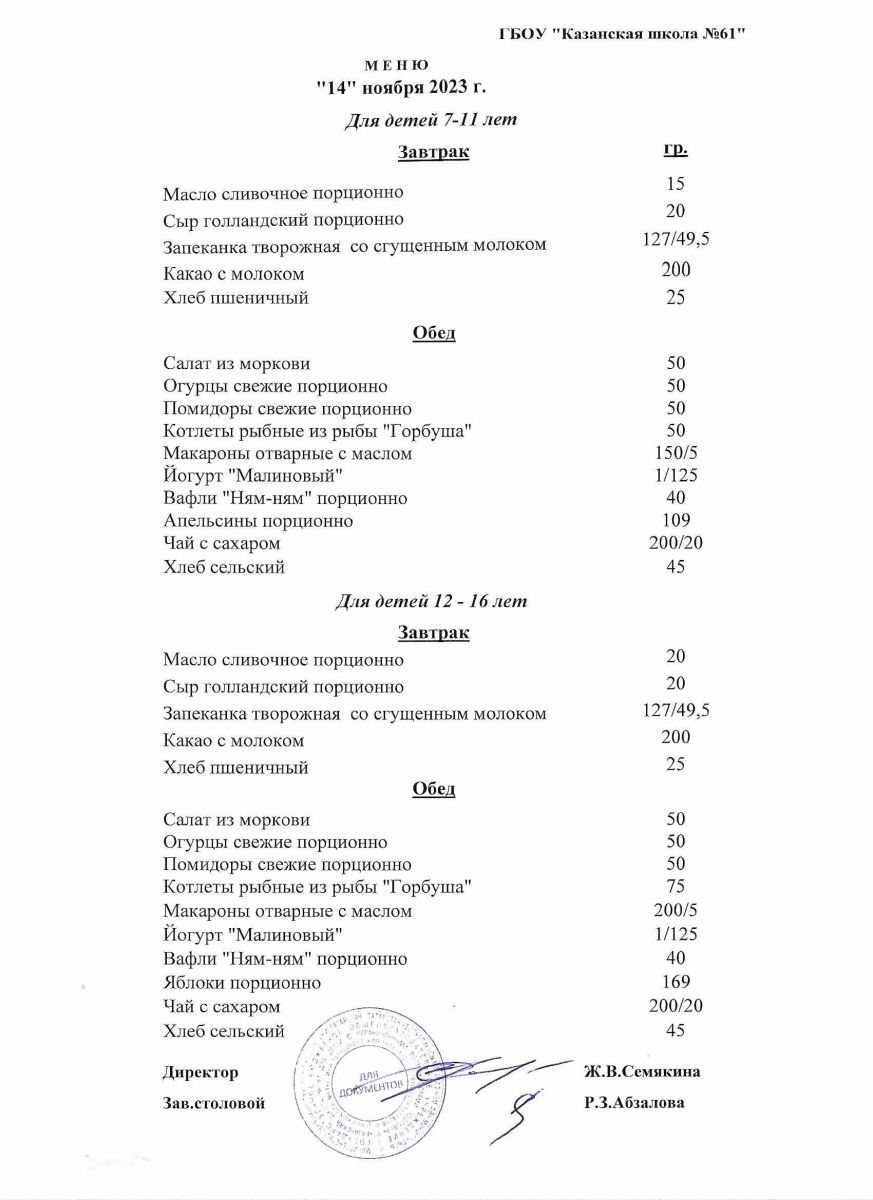 Меню на период с 11 по 17 ноября 2022 г.