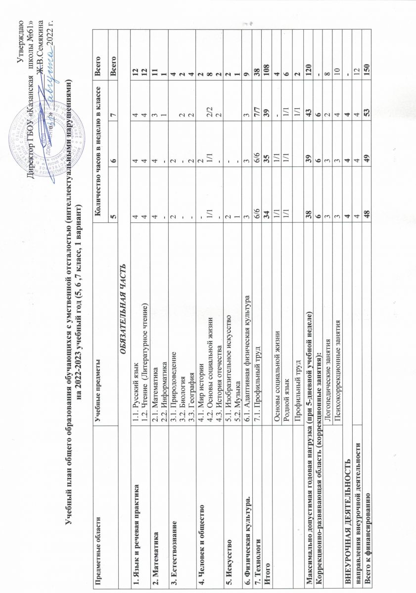 Пояснительная записка к учебному плану 5-8 классов АООП (1 Вариант) на 2023-2024 учебный год