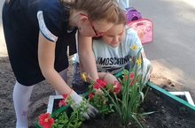 Классный руководитель 4а класса Нестерова Н.В. вместе с учащимися и их родителями работают над творческим проектом " Благоустройство территории школы". Помните! Красота спасет мир!